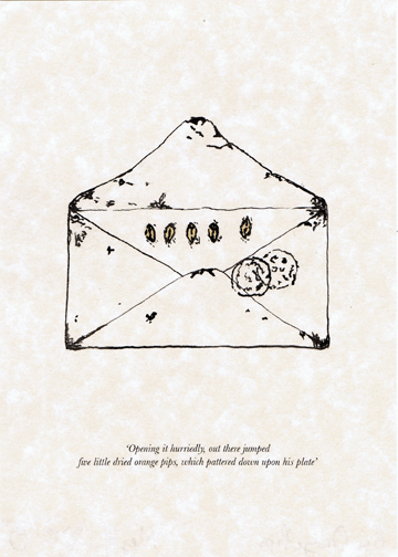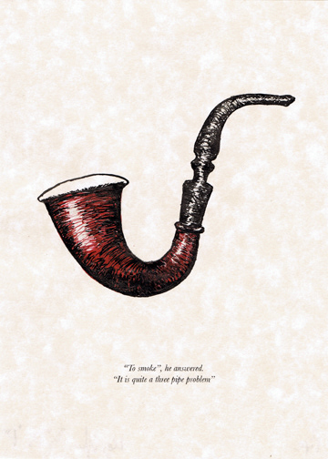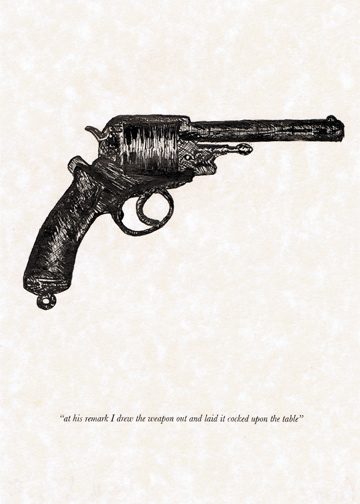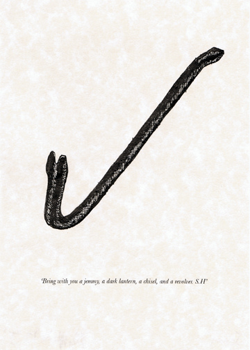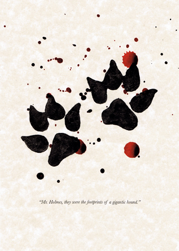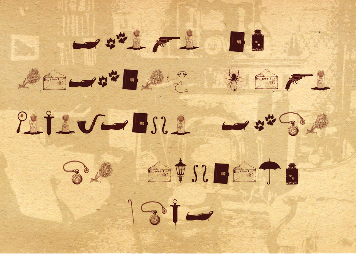 Using as many aspects of the Victorian Holmes era I used a calligraphy dipping pen and Indian inks on parchment paper to create an entire alphabet using icons from the Sherlock Holmes canon as well as two posters depicting quotes from the canon written in the code. In typical Holmes fashion, the audience has to use their sleuthing to deduce what the quote is by decoding the alphabet using quotes written in ‘Baskerville’ font under each relative icon.
