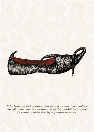This project was made as part of a Sherlock Holmes themed Exhibition called, ‘Elements of the Elementary’ opened August 2nd in White Lady Art Gallery, Dublin, Ireland. Running until September.