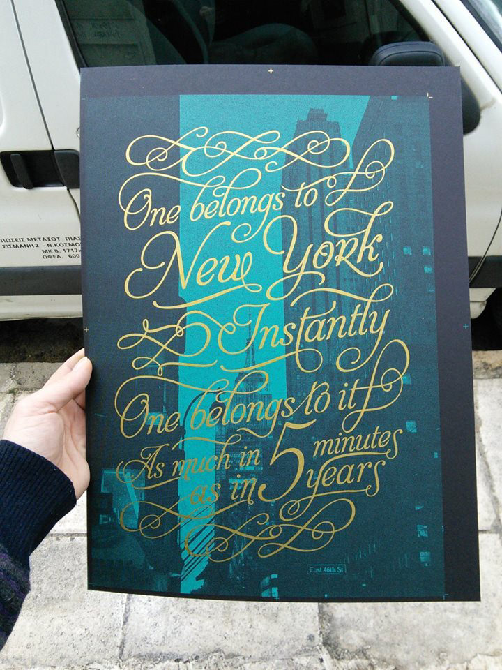 My piece is based on a quote by Tom Wolfe and was a direct response to how I felt when I first arrived in New York City some years ago using a photograph I had taken in Manhattan as the background.