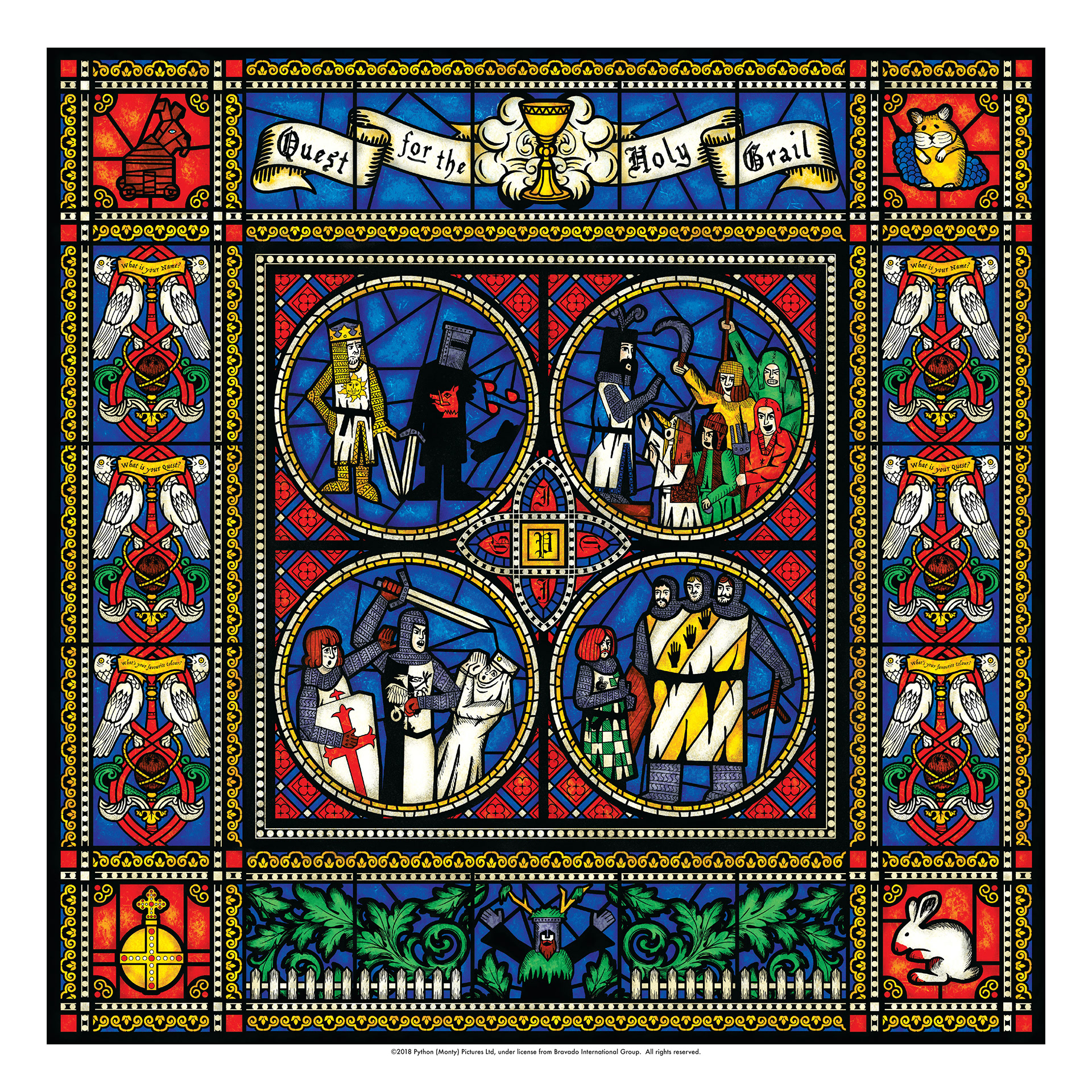 Gicleé print made for Gallery 1988's 2018 Official Monty Phyton Show. Inspired by medieval stain glass windows and their film The Holy Grail.