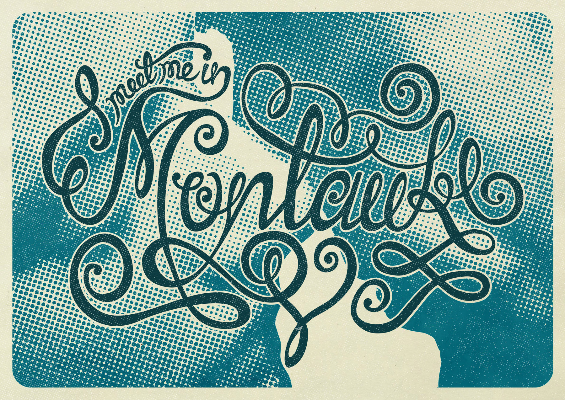 Part of Gallery 1988's 'Postcard Correspondence' Show. The brief was to create a pop-culture inspired postcard. I chose one of my all-time favourite films 'Eternal Sunshine of the Spotless Mind'. Depicting Joel and Clementine as she whispers the line that leads him back to her 'Meet me in Montauk'. Each colour variation is a nod to Clem's changing hair colour over the course of the film.